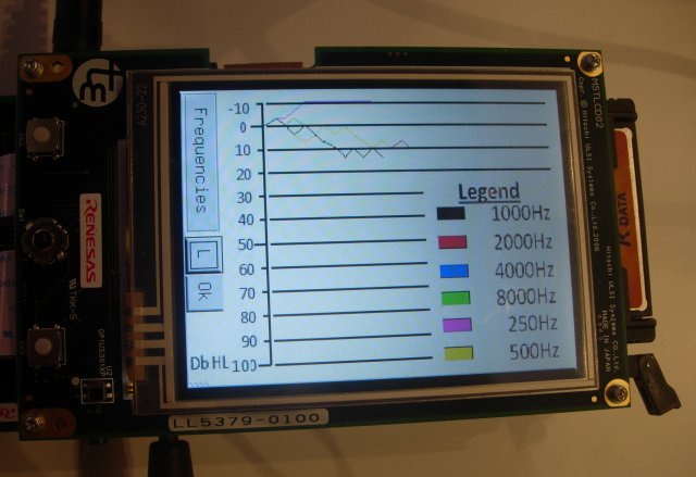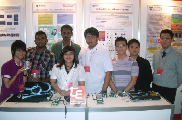 Republic Polytechnic of Singapore was present as a large contingent at the TRONSHOW 2010. Seven students and a lecturer brought two of their projects that use the T-Engine. The first was an enhanced version of the Portable Audiometer that they demonstrated last year. This can be used to test your hearing. The second project was an in-flight ordering system that could be used for placing orders from your seat. The crew would get a notification on their laptop along with the seat number from which the order was placed.